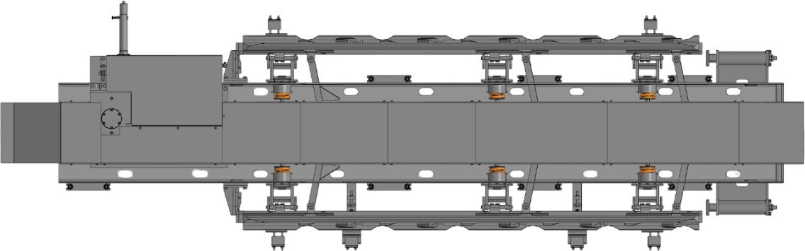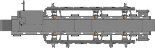 Модуль поглощающий необходим для исключения возможности критического перекоса надрессорной балки тележки, на колесную пару которой воздействует модуль закрепляющий.